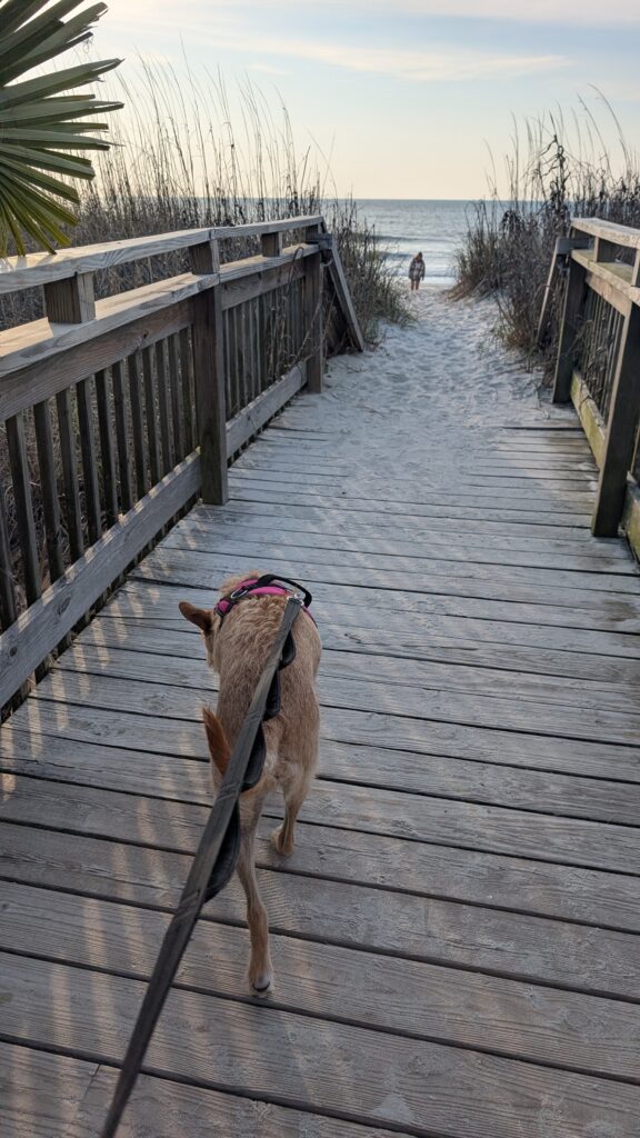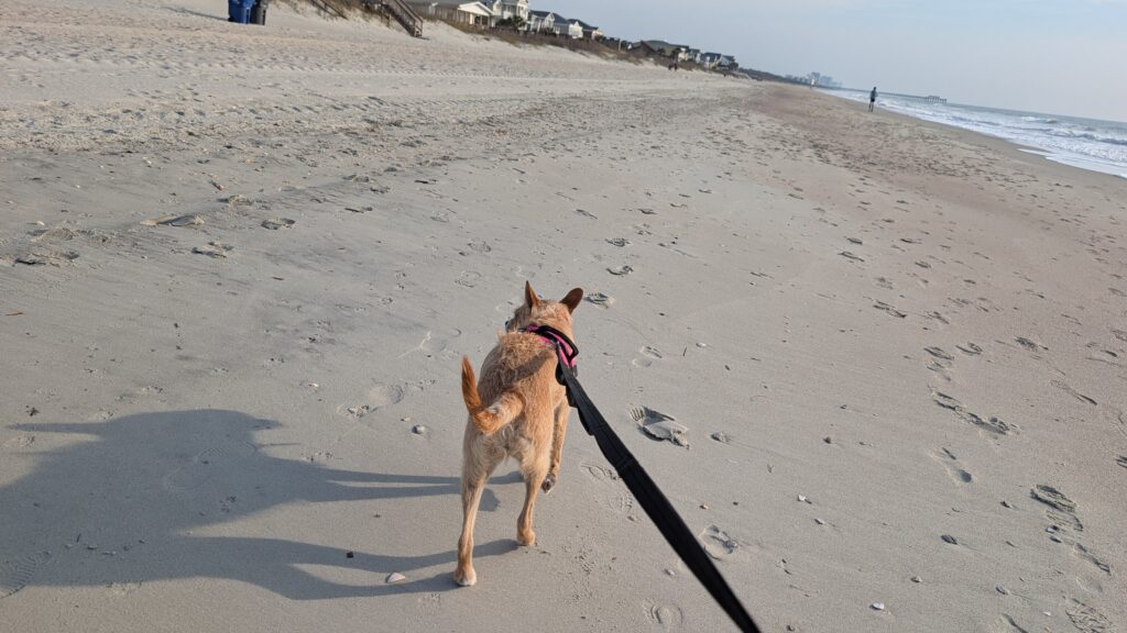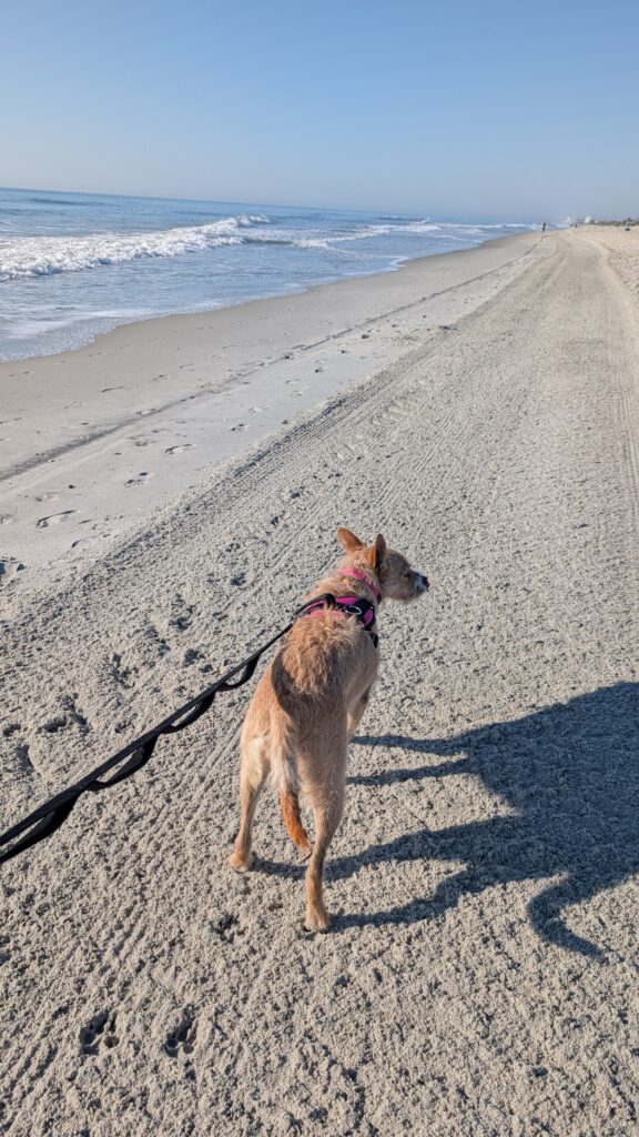Morning beach walk with Ruby