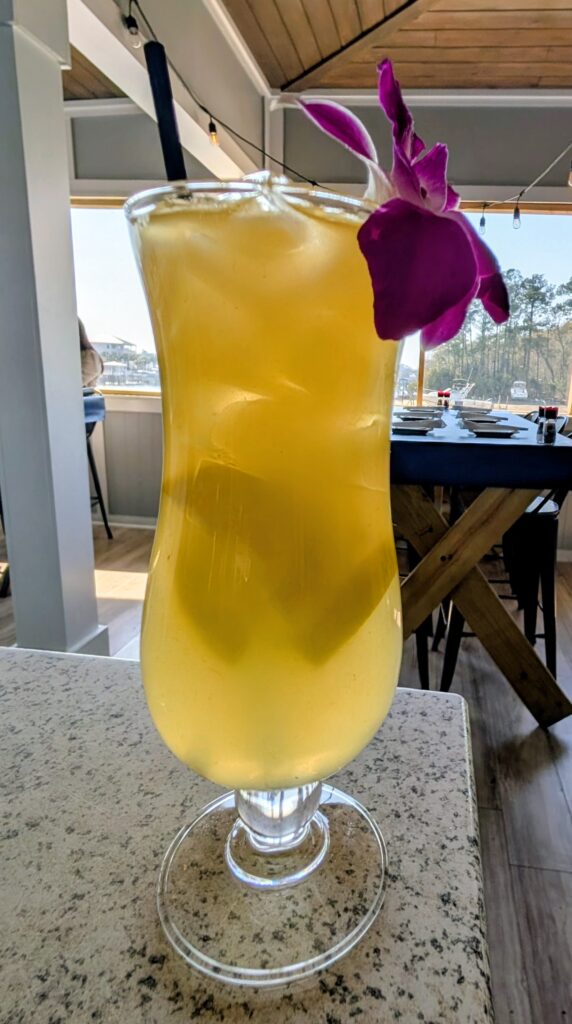 Blue Drum Waterfront restaurant overlooks a busy intercoastal waterway, perfect for watching boating life and celebrating a victory.